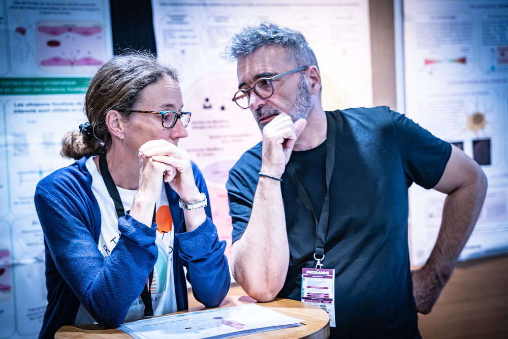 Tout au long de la matinée, Jean-Christophe Roux, directeur de recherche ; Marie-Solenne Félix, chercheuse post-doctorante ; Léna Bourcin et Camille de Combarieu, étudiantes en thèse ; Yasmine Belaidouni, chercheuse ; Nicolas Panayotis, chercheur et son étudiant Yohan Leblay ; Jean-Luc Gaïarsa, chercheur et Marion Mathieu, formatrice Tous chercheurs, se tenaient à disposition des participants pour échanger, vulgariser, expliquer, et répondre à toutes vos questions.
